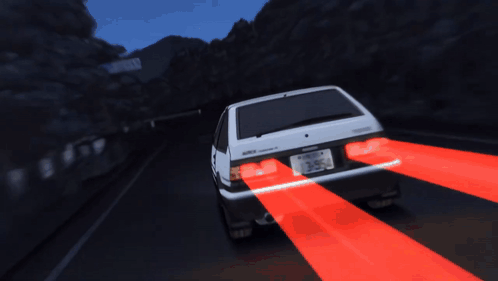 የይዘት መግለጫ: a trueno car is driving down a dark road