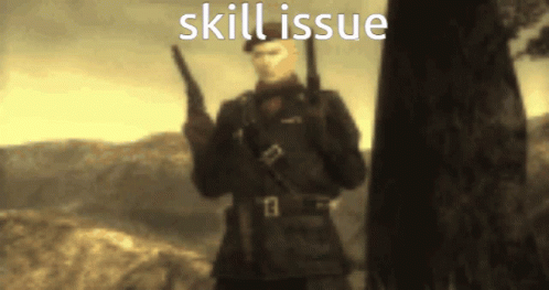የይዘት መግለጫ: a man in a military uniform holding a gun with the words skill issue written above him