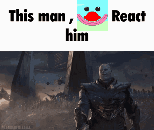 Opis sadržaja: a picture of thanos with a clown face and the words this man react him