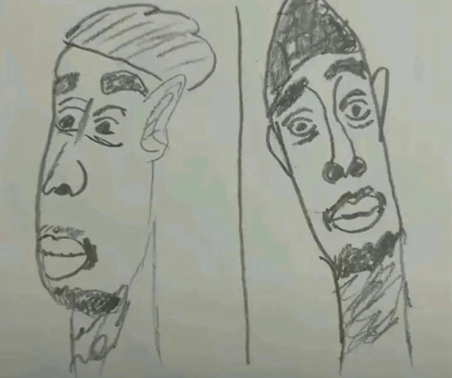 Inhaltsbeschreibung: a drawing of a man 's face with a beard