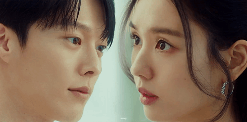 Περιγραφή περιεχομένου: a man and a woman are looking at each other with their eyes closed