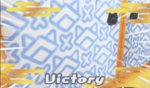 Content description: a video game screen shows a red cat and the words victory
