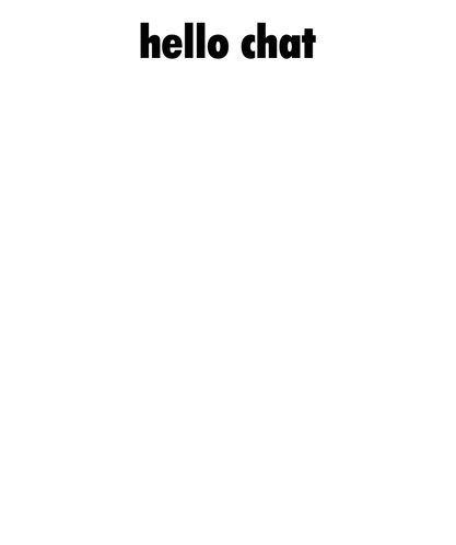 Content description: a black and white drawing of a person with a triangle on their head and the words `` hello chat '' below it .