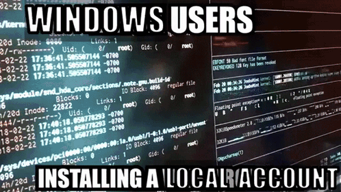 Descripción del contenido: a computer screen with the words windows users installing a local account at the top
