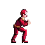 Բովանդակության նկարագրություն: a pixel art of a man in a red suit is squatting down .