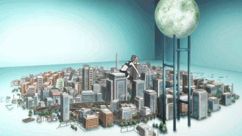ការពណ៌នាអំពីខ្លឹមសារ: a model of a city with a woman standing on top of it