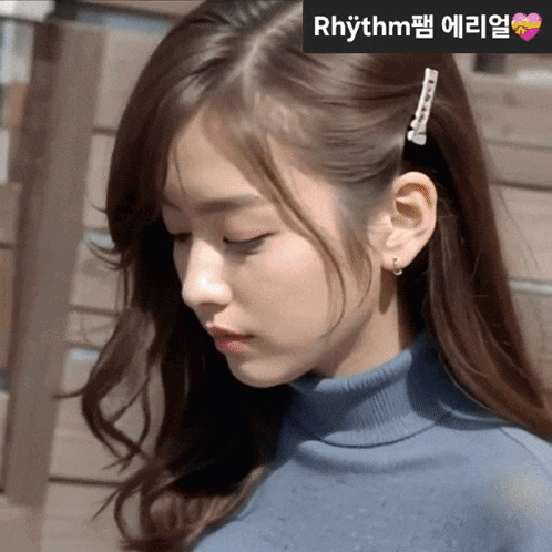 ការពណ៌នាអំពីខ្លឹមសារ: a close up of a woman 's face with rhythm written on the bottom