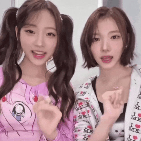 ការពណ៌នាអំពីខ្លឹមសារ: two girls are posing for a picture and one is wearing a jacket that says i love me