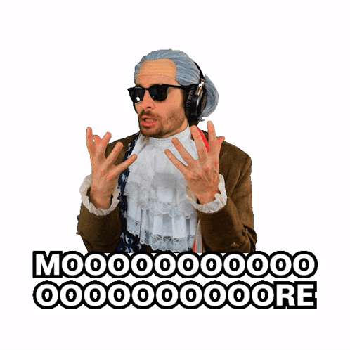 ការពណ៌នាអំពីខ្លឹមសារ: a man wearing a wig and headphones is dancing with the words mooooooo oooooooore behind him
