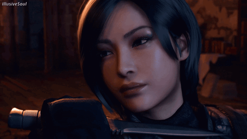 ការពណ៌នាអំពីខ្លឹមសារ: a close up of a woman holding a knife with illusive soul written in the bottom right corner