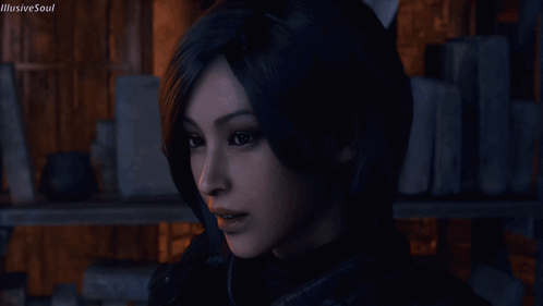 - ការពណ៌នាអំពីខ្លឹមសារ: a woman in a video game is standing in front of a shelf with the words altersive soul written on the bottom