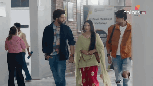 ការពណ៌នាអំពីខ្លឹមសារ: a group of people walking in a hallway with a sign that says extend heartfelt welcome