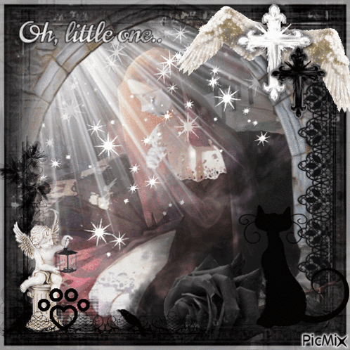 ការពណ៌នាអំពីខ្លឹមសារ: a black and white picture with the words oh little one written on it