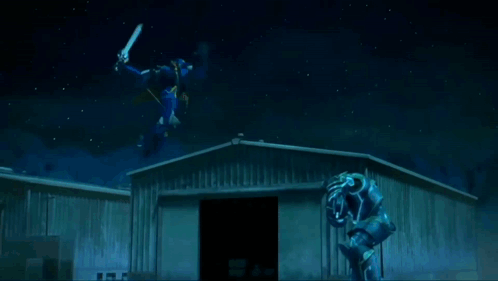 ការពណ៌នាអំពីខ្លឹមសារ: a robot is flying through the air in a dark room .