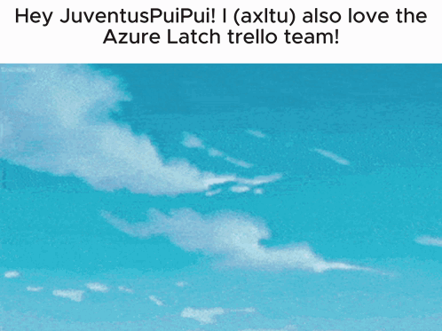 - ការពណ៌នាអំពីខ្លឹមសារ: a blue sky with white clouds and the words hey juventuspuipui i also love the azure latch trello team below it