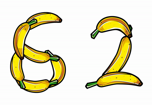 ការពណ៌នាអំពីខ្លឹមសារ: the number 62 is made out of bananas with green stems