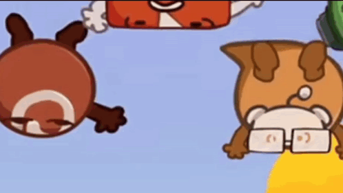 - ការពណ៌នាអំពីខ្លឹមសារ: a group of cartoon characters are sitting on a blue surface . one of the cartoon characters is wearing glasses .