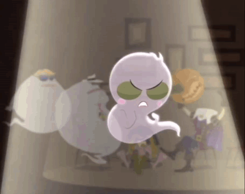 ការពណ៌នាអំពីខ្លឹមសារ: a cartoon of a ghost standing in front of a group of people