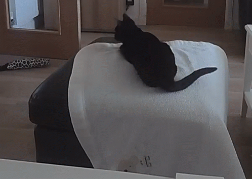 ការពណ៌នាអំពីខ្លឹមសារ: a black cat is laying on a white blanket