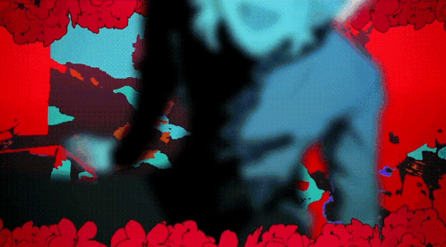 ការពណ៌នាអំពីខ្លឹមសារ: a painting of a person 's face with red flowers in the background