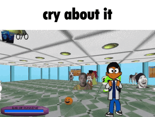ការពណ៌នាអំពីខ្លឹមសារ: a cartoon character in a room with the words cry about it