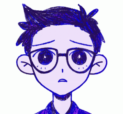 ការពណ៌នាអំពីខ្លឹមសារ: a drawing of a boy wearing glasses and purple hair