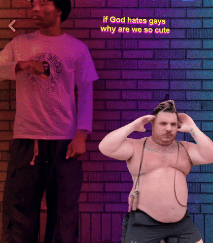 ការពណ៌នាអំពីខ្លឹមសារ: a man in a shirt that says chrome hearts stands next to a man in a shirt that says if god hates gays