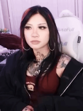 ការពណ៌នាអំពីខ្លឹមសារ: a woman with a lot of tattoos on her body is wearing a black jacket and a red tank top .
