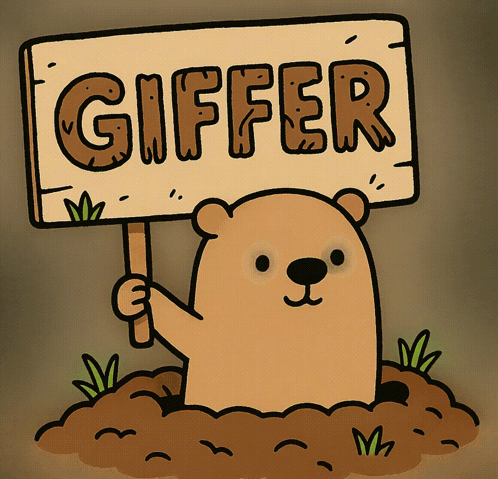 ការពណ៌នាអំពីខ្លឹមសារ: a cartoon groundhog holding a sign that says giffer