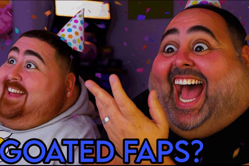 ការពណ៌នាអំពីខ្លឹមសារ: a man wearing a party hat with the words " goated faps " on the bottom