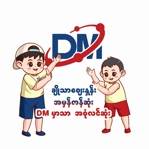 ការពណ៌នាអំពីខ្លឹមសារ: a cartoon illustration of two boys standing next to a dm logo