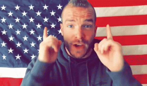 ការពណ៌នាអំពីខ្លឹមសារ: a man in front of an american flag making a rude gesture