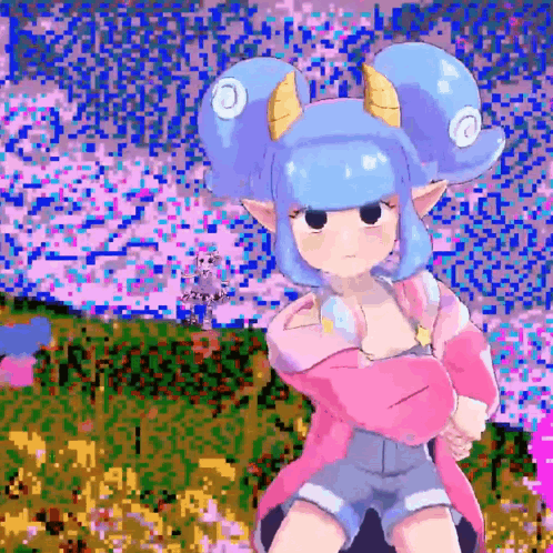 ការពណ៌នាអំពីខ្លឹមសារ: a pixel art drawing of a girl with horns and blue hair