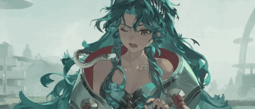 ការពណ៌នាអំពីខ្លឹមសារ: a girl with long blue hair and a snake on her shoulder