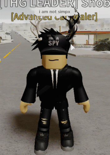 ការពណ៌នាអំពីខ្លឹមសារ: a roblox character is wearing a black hat that says i 'm a spy