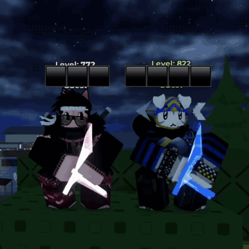 ការពណ៌នាអំពីខ្លឹមសារ: a pink and a blue cartoon character are standing next to each other with guest written on their screens