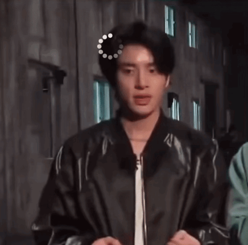 - ការពណ៌នាអំពីខ្លឹមសារ: a young man wearing a black leather jacket is standing in front of a building and looking at the camera .