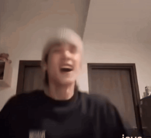 ការពណ៌នាអំពីខ្លឹមសារ: a blurry picture of a man wearing a beanie and a black shirt that says nirvana