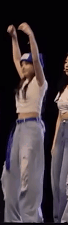 - ការពណ៌នាអំពីខ្លឹមសារ: two women are dancing on a stage with their arms in the air . one of the women is wearing a baseball cap .