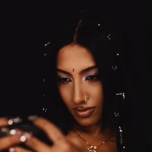 ការពណ៌នាអំពីខ្លឹមសារ: a woman with a nose ring is taking a selfie with her phone
