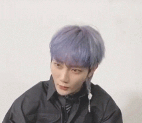 ការពណ៌នាអំពីខ្លឹមសារ: a young man with purple hair and earrings is sitting in front of a wall .