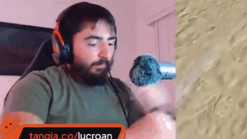 ការពណ៌នាអំពីខ្លឹមសារ: a man with a beard wearing headphones and a microphone is sitting in front of a wall .
