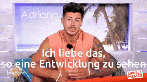 ការពណ៌នាអំពីខ្លឹមសារ: a man is sitting in a chair with the words ich liebe das written above him