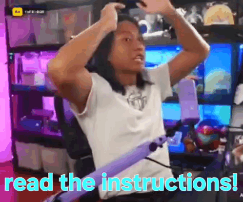 - ការពណ៌នាអំពីខ្លឹមសារ: a man is sitting in a chair with his hands in the air and the words read the instructions written on the bottom .
