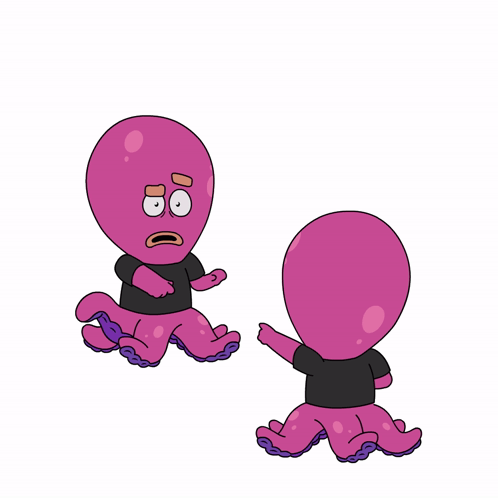 ការពណ៌នាអំពីខ្លឹមសារ: a cartoon of two pink octopus wearing black t-shirts