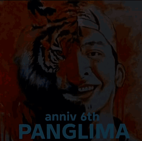 ការពណ៌នាអំពីខ្លឹមសារ: a painting of a man and a tiger with anniv 6th panglima written below it
