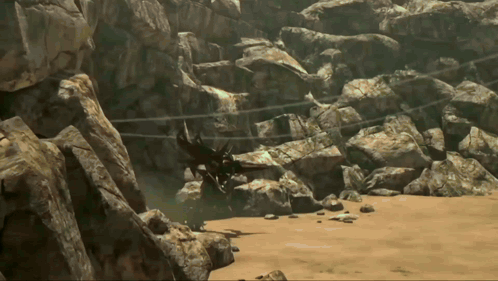 ការពណ៌នាអំពីខ្លឹមសារ: a computer generated image of a rocky area with a few trees in the background