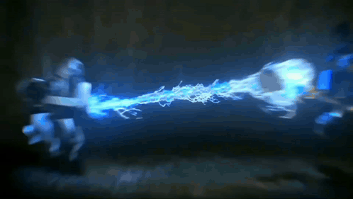 ការពណ៌នាអំពីខ្លឹមសារ: a blue lightning bolt is coming out of the ground in the dark