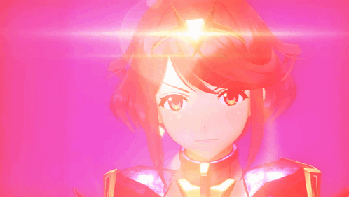 ការពណ៌នាអំពីខ្លឹមសារ: a close up of a red anime character with a light shining on her face