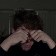 ការពណ៌នាអំពីខ្លឹមសារ: a man with curly hair is covering his face with his hands .